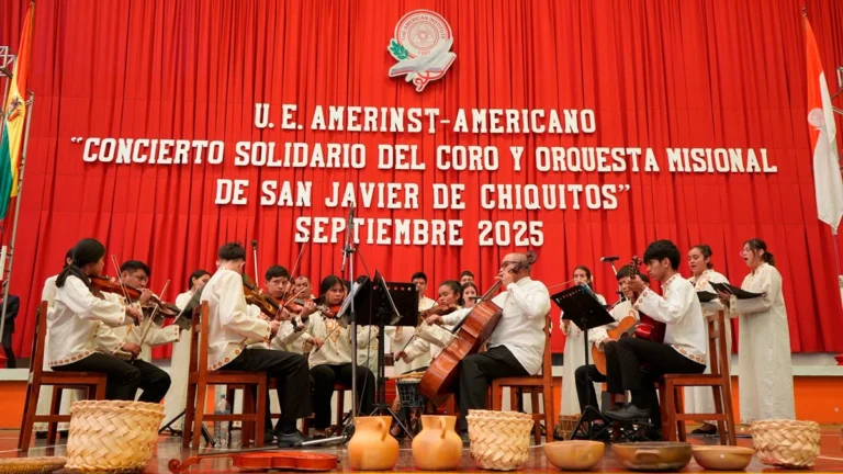 Wtv/prensa, La Paz, 11 de septiembre de 2025. – Con un emotivo concierto en el Coliseo del Instituto Americano Landaeta, el Coro y Orquesta Misional de San Javier de Chiquitos dio inicio a la Gira Nacional e Internacional 2025 “Melodías que Transforman Vidas”, que recorrerá escenarios de Bolivia y Perú entre el 11 y el 20 de septiembre.